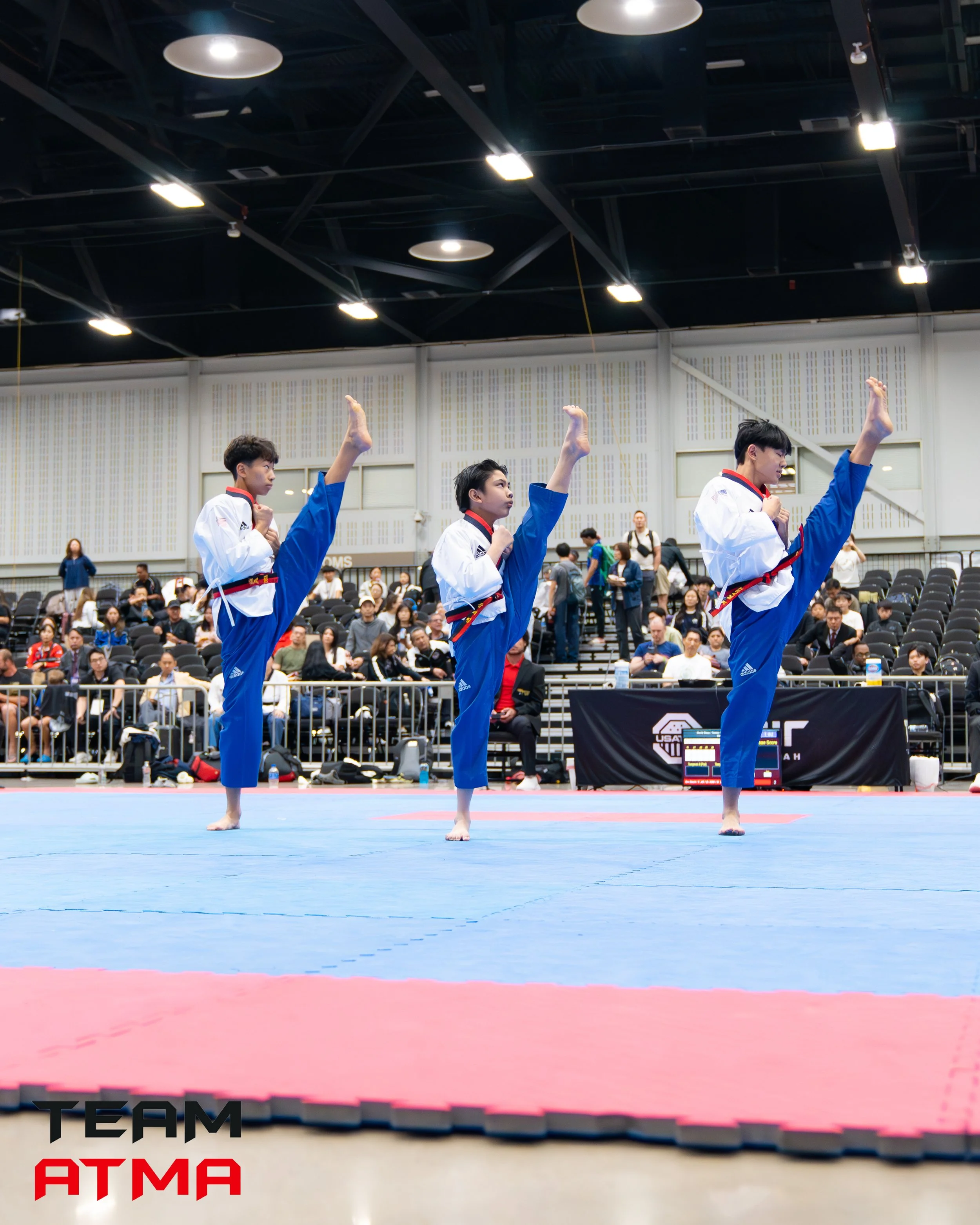 Not to be outdone by the junior teams, Aiden Decolongon, David Gil, and Jayden Kim (Team K) also won a 🥇 medal in the male cadet team poomsae. This team is on their way to Hong Kong for the 2024 Poomsae World Championships later this year. Kosei Tamura, Ethan Kim (Team SJ), and Mason Kwan (Team TC) teamed up to win a 🥉 medal in the same division.